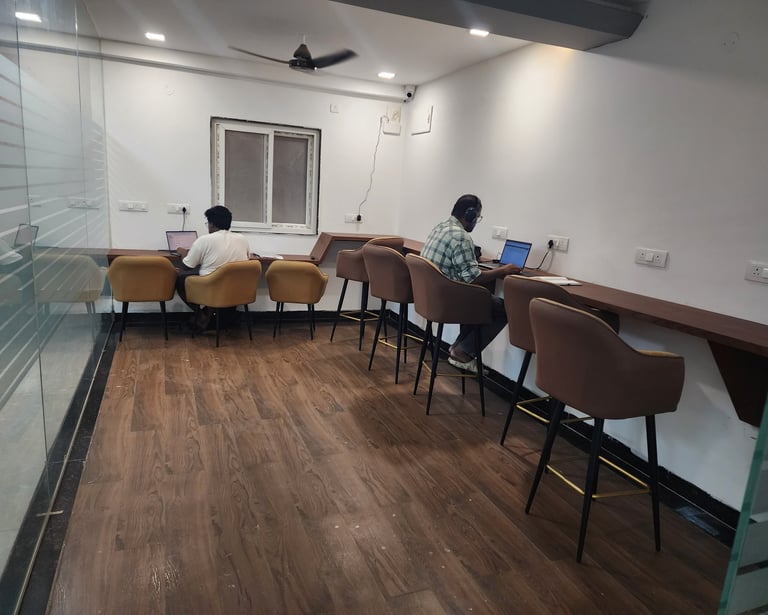 Dedicated workspace with high-speed WiFi, comfortable seating, and a quiet environment for productivity.